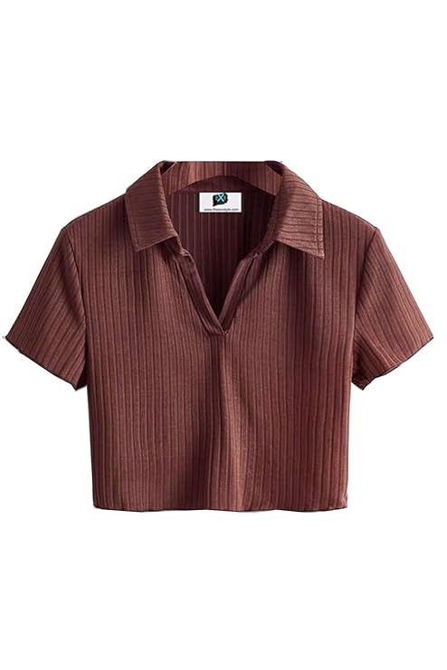 DressesSXV Brown Ribbed Polo Collar Crop t-Shirt